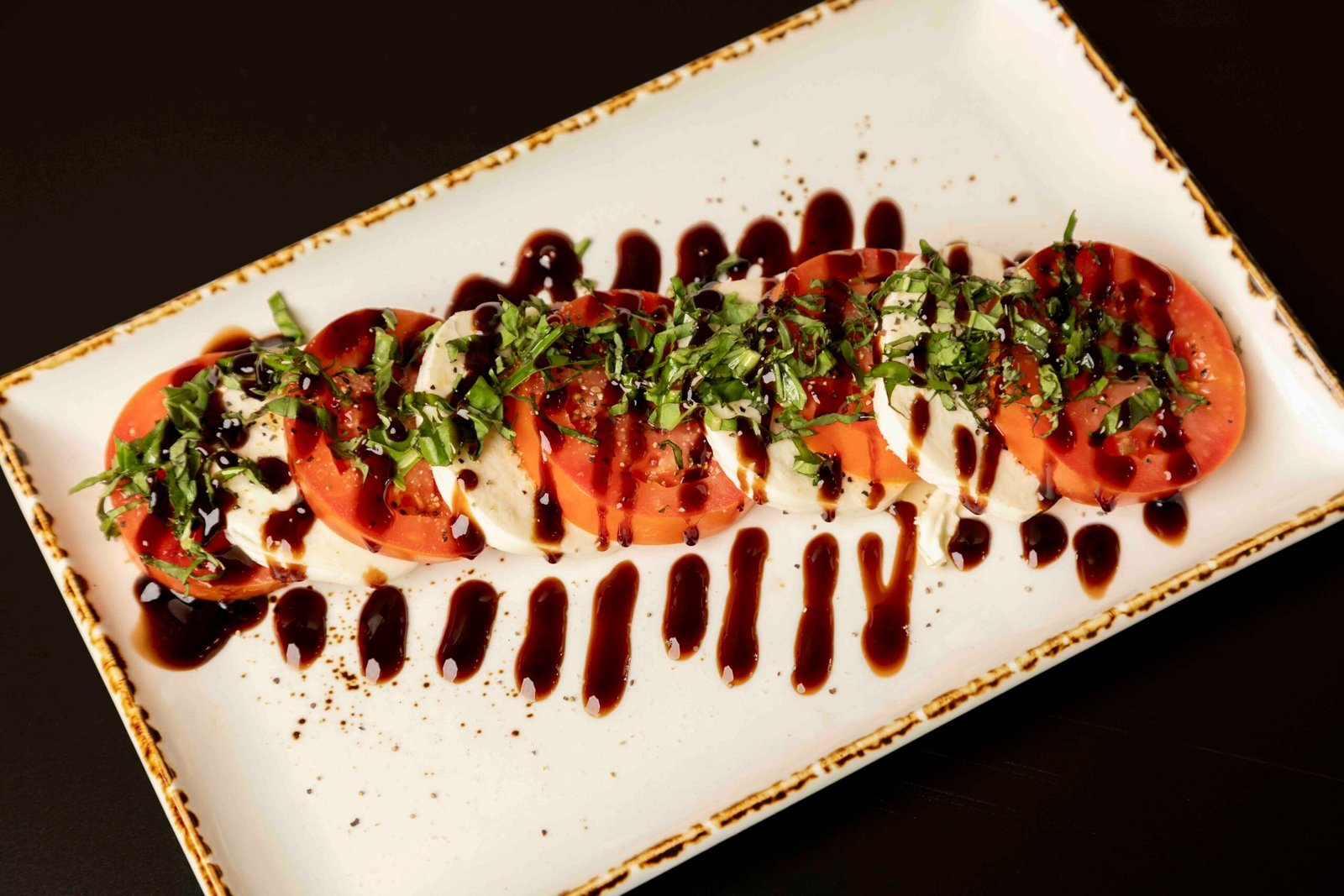 Fresh tomatoes, fresh mozzarella, basil drizzled with balsamic vinegar & olive oil
