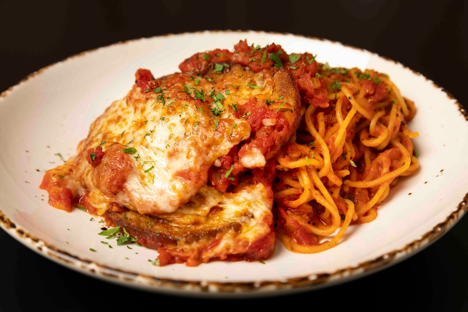 breaded eggplant, topped with melted mozzarella & served with spaghetti marinara