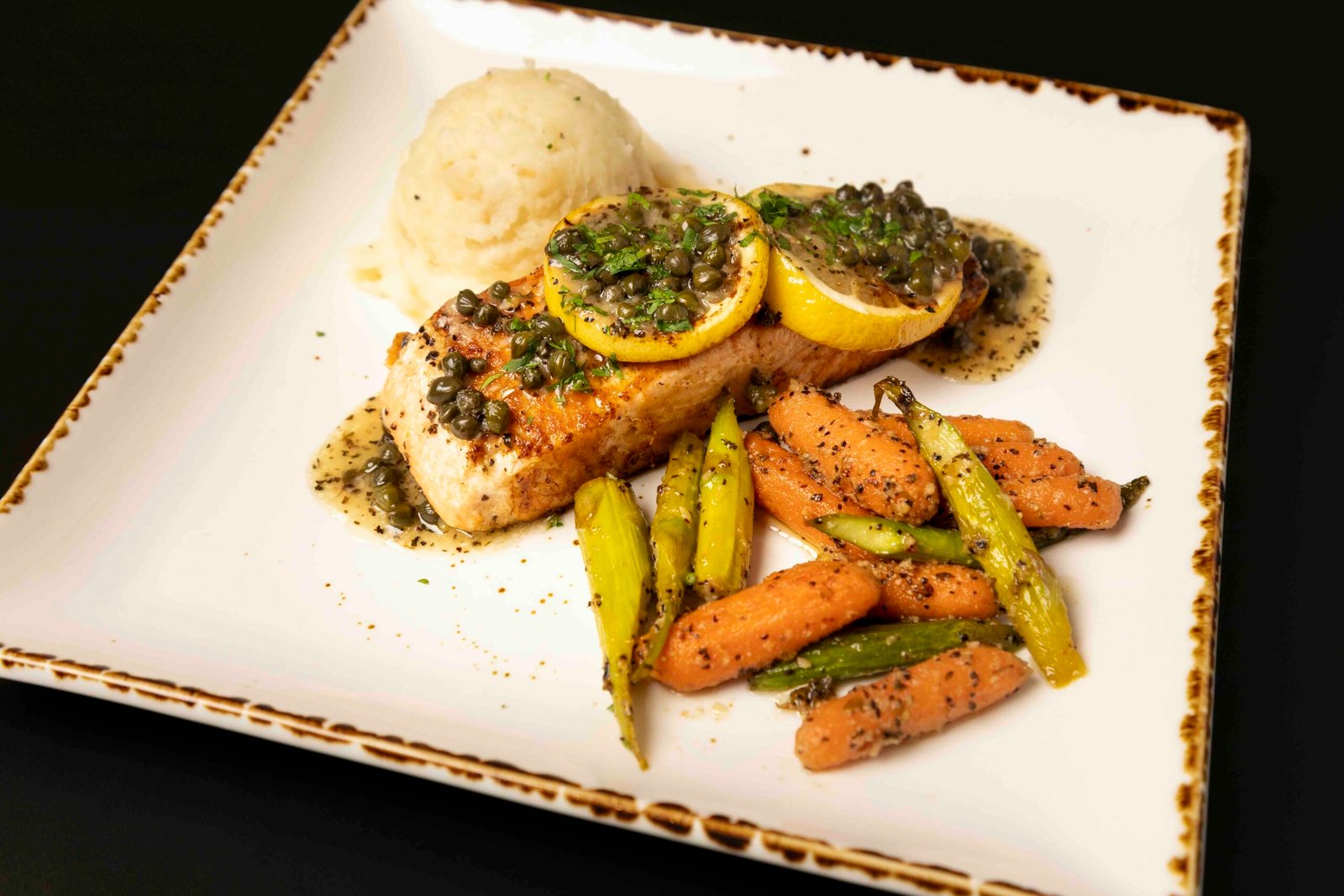 8 oz. grilled salmon served with locally sourced vegetables & mashed potatoes