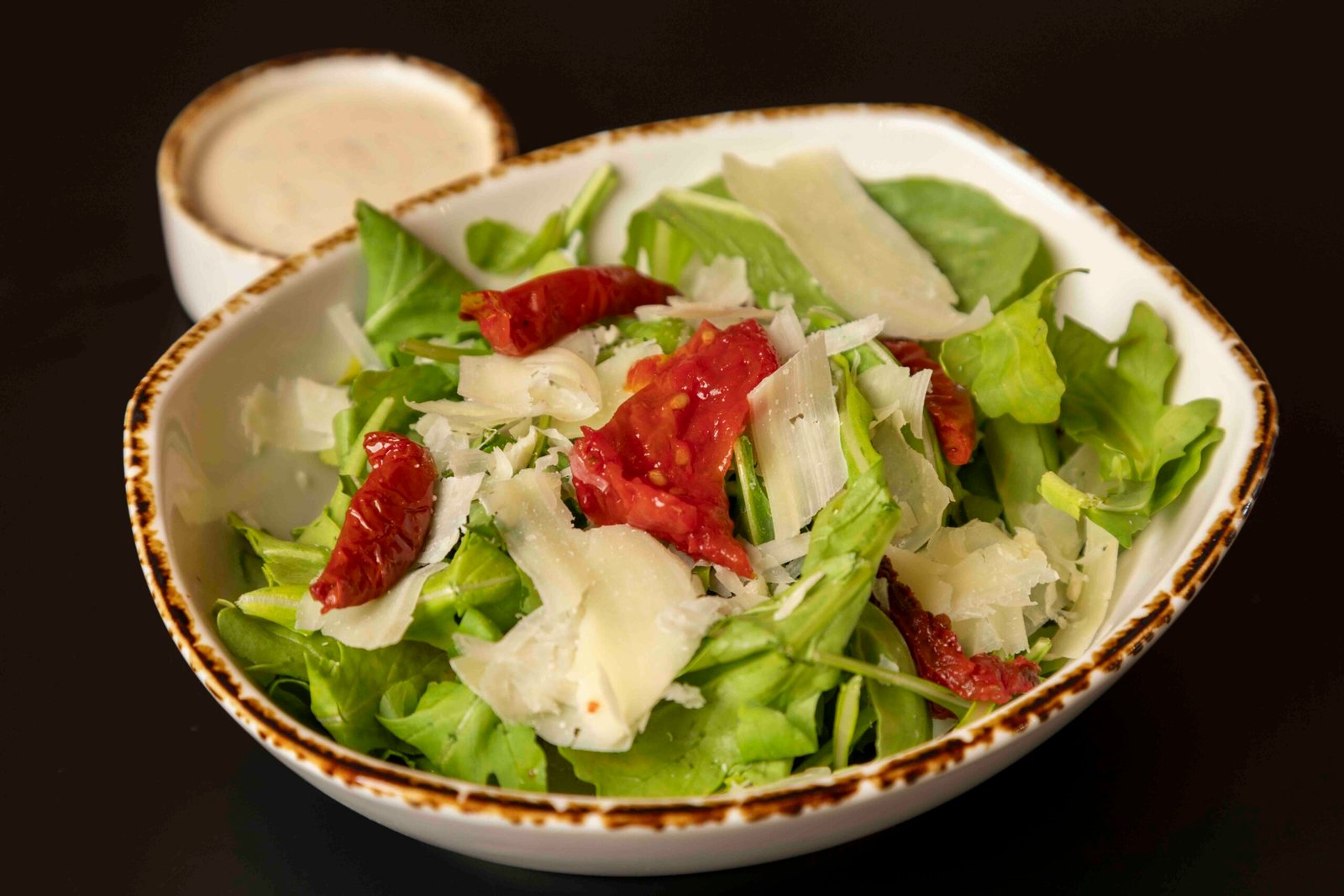 Arugula, shaved fresh parmesan, roasted tomatoes, lemon, olive oil
