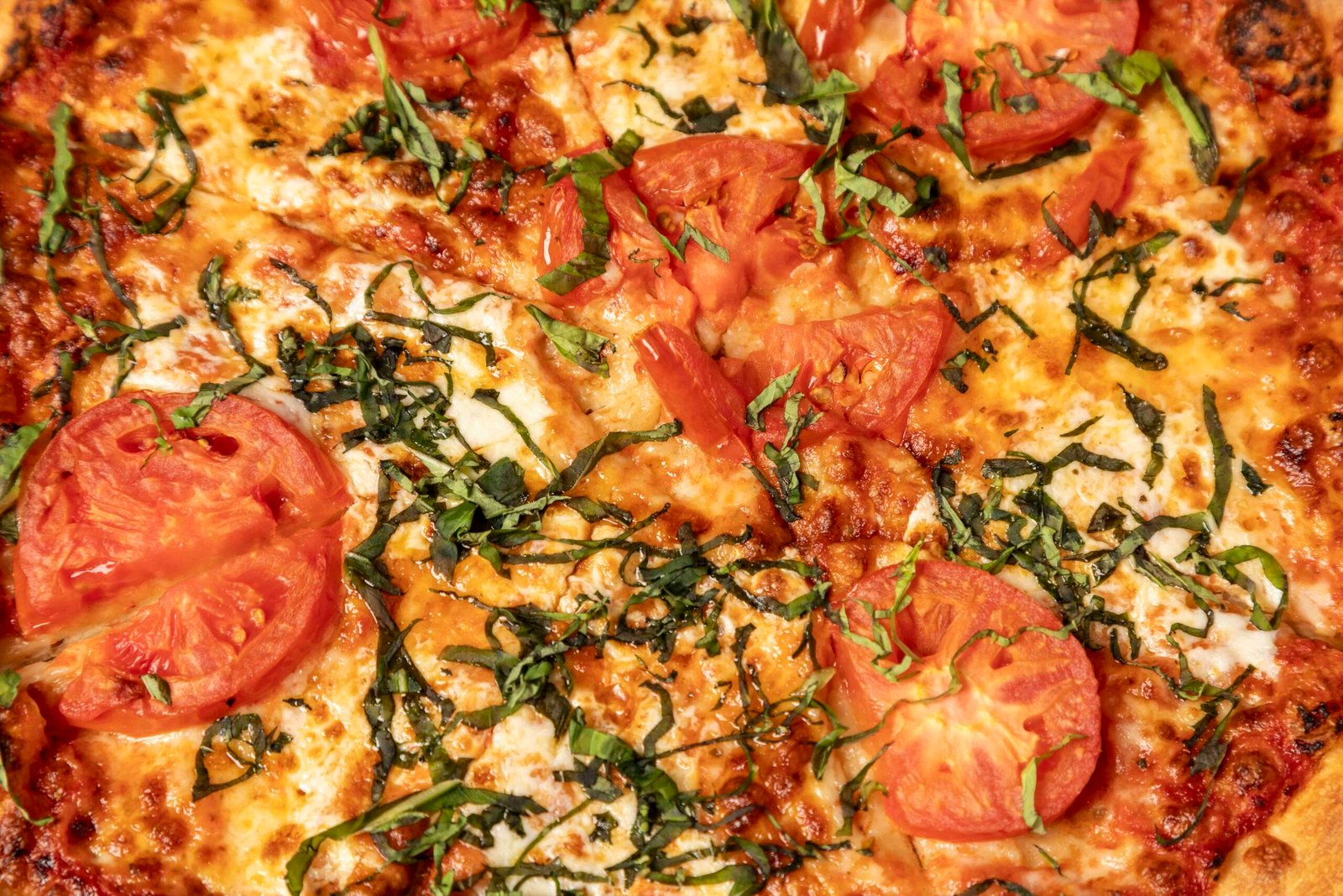 pizza sauce, fresh mozzarella, fresh tomatoes, basil & garlic