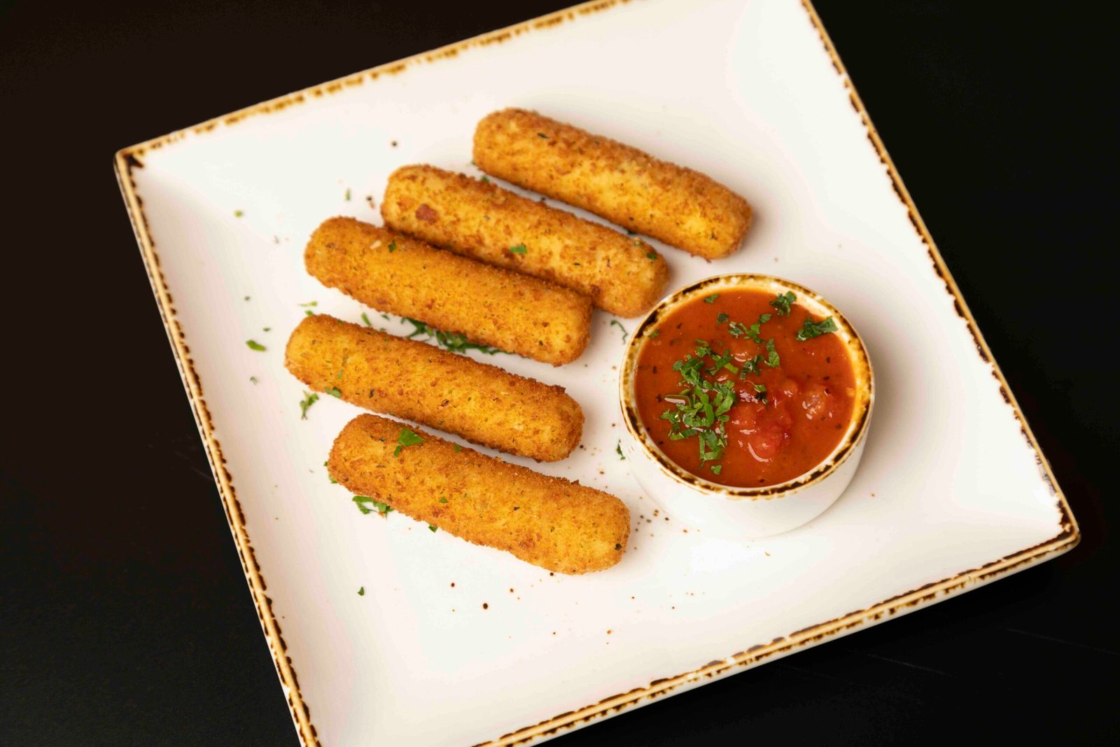 Sticks filled with mozzarella and coated in italian breadcrumbs, served with a side of marinara.